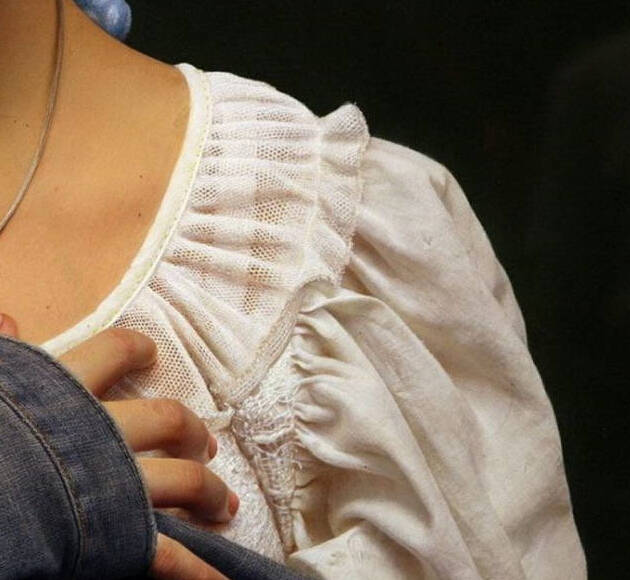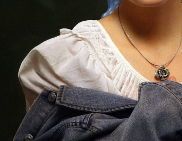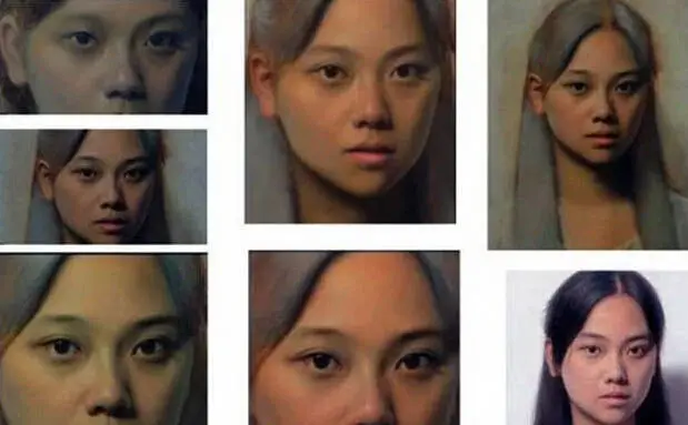 《肖像之相——小唐》的人物,是清纯甜美无邪的,像西方教堂里的童女那样纯洁,她的形象和当下物欲横流的社会似乎有着鲜明的对比。少女那纯朴甜美迷人的形象,就像生活中的邻家少女一样。她的肌肤发着光泽,却又湿润。眼睛是那样的水灵晶莹,以极细致的线条勾勒出来的秀发黢黑而浓密,衬托出纯真、甜美、细腻的粉红色脸庞。嘴唇上自然的红色与脸部肤色十分地和谐,就跟真的皮肤一样,已经完全看不出绘画手段的痕迹,似乎是高精度的放大照片,但又是实实在在用手工用颜料绘制出来的,真正达到了“细腻而不腻,逼真而非真”的大师水准。