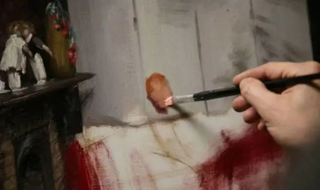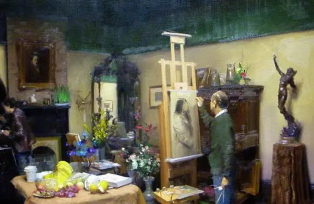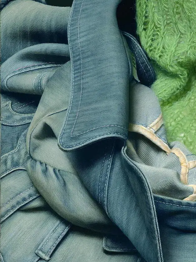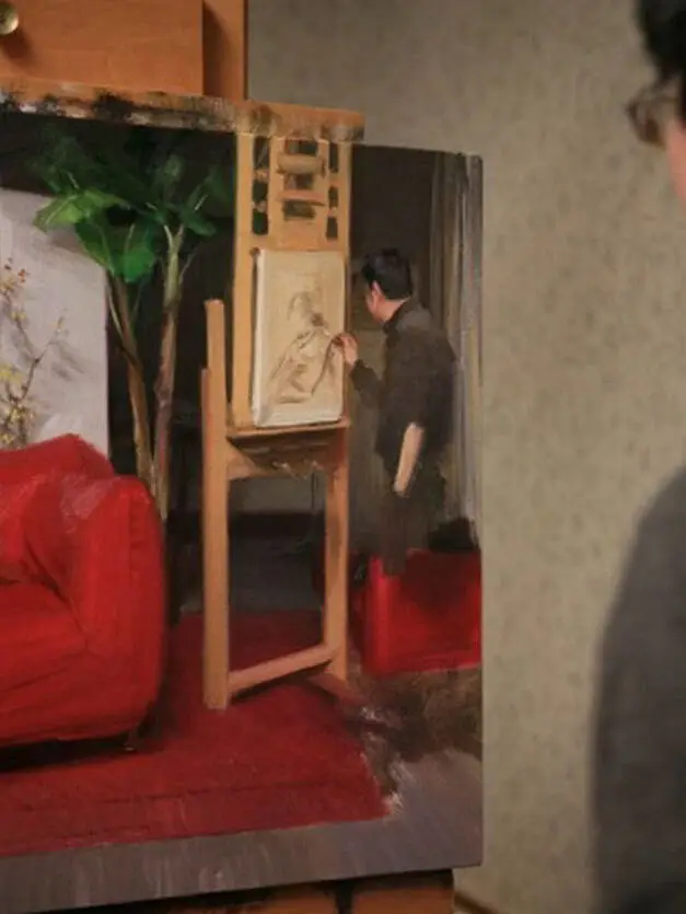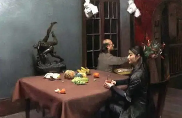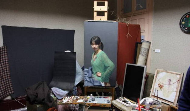 他能在一平方厘米的画面上通过各种媒介可以反复画1天,调用各种手段如:吹风机、高倍放大镜、反光片,投影、实物写生时对应的高清晰照片、电脑显示器、实物、还有冷军自制的特殊油画工具、特殊油画底子、特定的画室环境光线等等,能够一天9个小时,连续4个月完成一幅作品,所以他的有些油画带给人的震撼也是可想而知的了。现在国内已经很少有这样的技术好、思路好、毅力强、有追求和责任感的画家了。
