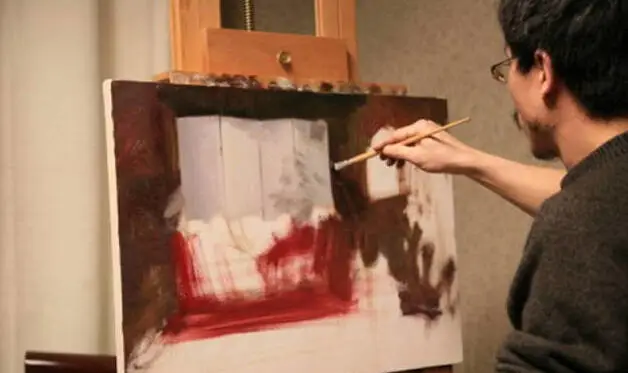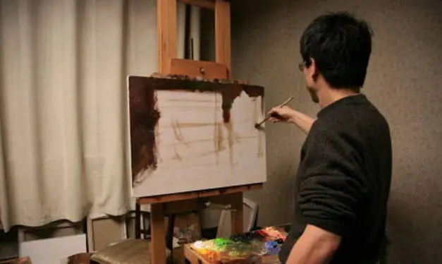 冷军具体绘制过程,一般都是直接写生画法,而他间接的画法会令亲眼看他作画的人难忘: