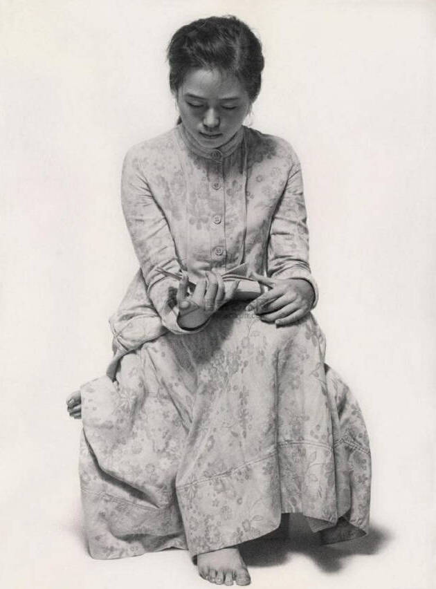 罗丹说过:“在艺术中,有‘性格’的作品,才算是美的。”冷军的人像写生,如《蒙娜丽莎·关于微笑的设计》,古典式的精密细腻与现代式的冥想、传统式的端庄严正和当代的某种虚幻、写实的个性化处理同写生构图的象征结合,性格别具。[NextPage]