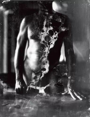 在最近的六年时间,我们看到了莎莉-曼恩的影像完成了大幅度的转变——她运用湿版拍摄她生病的丈夫——赖瑞患上了迟发性肌肉萎缩症,这种病症的发作无法逆转,只会异常痛苦地渐渐加重。与以往她拍摄孩子画面的精美程度完全不同的是,莎莉·曼恩的丈夫赖瑞在镜头中完全呈现出不完整的视觉状态,一些被截取的男性躯体局部,有时候甚至是模糊不清的。加上有意产生的划痕和斑点,更使画面产生了莫名的冲击力。