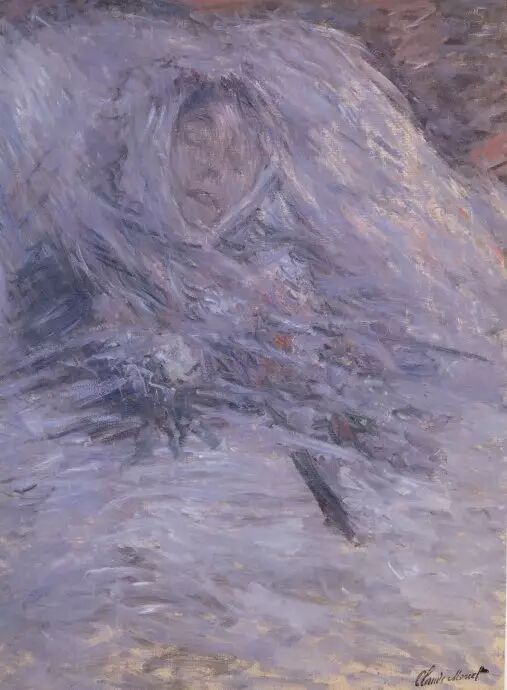 卡米勒陪伴莫奈度过最艰难的日子,却未能分享到他的成功和名望。1879年的9月5日,身患肺结核的卡米勒,在操劳和贫困中,过早地离世,年仅32岁。在爱妻弥留之际,莫奈忍着巨大的悲伤,为她画了《临终的卡米勒》。他后来回忆说:“在卡米勒的病床前,我十分本能地对那已无表情的年轻面孔仔细端详,寻找死神带来的色彩,观察颜色的分布和层次的变化,于是,萌生出一个念头,要为这即将离开我的爱人画最后一幅肖像。”