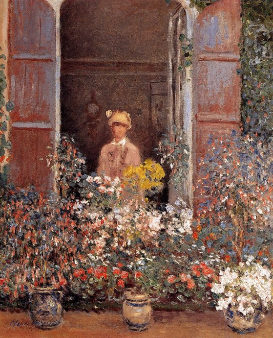 也许在卡米勒的心里,能够作为莫奈的模特,便是她一生的心愿。而莫奈也确实用他的画笔,让卡米勒的生命得以永生。莫奈用十年时间画了《红围巾,莫奈夫人画像》,献给他的爱人。他十分珍爱这幅作品,一直将它收藏在身边。画中,带着红围巾的卡米勒,从门外匆匆经过,带着疲倦与怜爱的眼神,瞥进这个所谓的家门内。也许此时莫奈也刚好抬起头,彼此的目光交汇在一起。于是,他被这匆匆一瞥所深深牵引,把刹那变成了永恒。