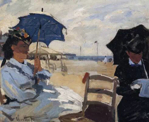 1870年,莫奈与卡米勒正式举行了婚礼。他们在特鲁维尔(Trouville)度过了自己的蜜月。蜜月期间,在特鲁维尔的沙滩上,莫奈完成了一系列以卡米勒为描绘对象的人物风景画。