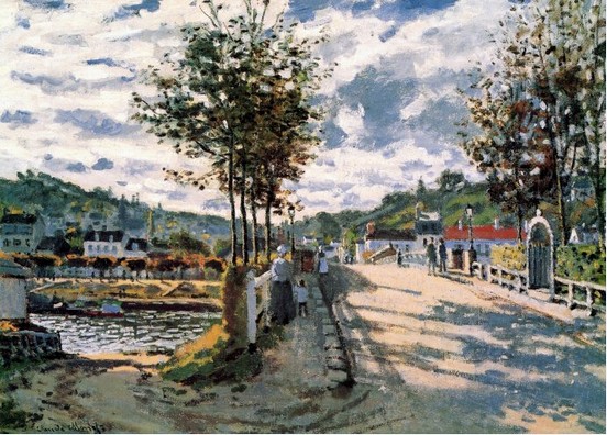 《布日勒瓦(巴黎西部的乡下)的桥》1869年(画面中可以看到卡米勒和他们的儿子)
