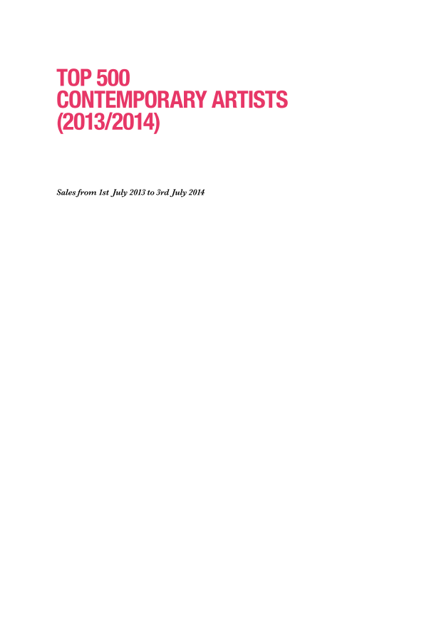 2014年世界当代艺术家500,前3名分别是美国艺术家米歇尔·巴斯奎特(BASQUIAT Jean·Michel),杰夫·昆斯(KOONS Jeff),克里斯托弗·伍尔(WOOL Christopher),第4名是中国艺术家曾梵志,罗中立列第8。日本艺术家村上隆(Takashi Murakami)排在第23位,为其它亚洲国家的最高排名。杨佴旻此次是他首次进入前100(去年他的排名是315)。